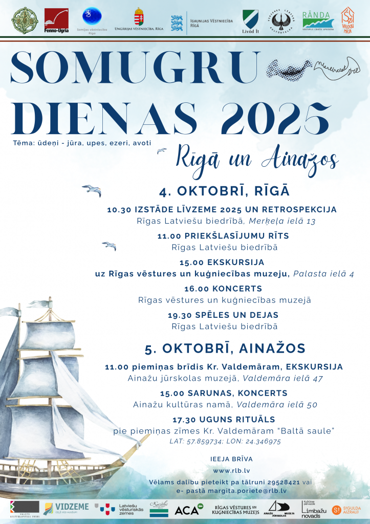 “Somugru dienas 2025” Rīgā un Ainažos, 4. un 5. oktobrī Tēma: ūdeņi – jūra, upes, ezeri, avoti PROGRAMMA RĪGĀ, 4. oktobrī no 10.30 Rīgas Latviešu biedrības (RLB) namā, Merķeļa ielā 13 biedrības “Randalist” starptautiskā mākslas plenēra IZSTĀDE “Līvzeme 2025 un retrospekcija” rīko Ieva Liepiņa un Agnija Ģērmane 11.00 – 14.00 PRIEKŠLASĪJUMU RĪTS (vēsturiskais […]