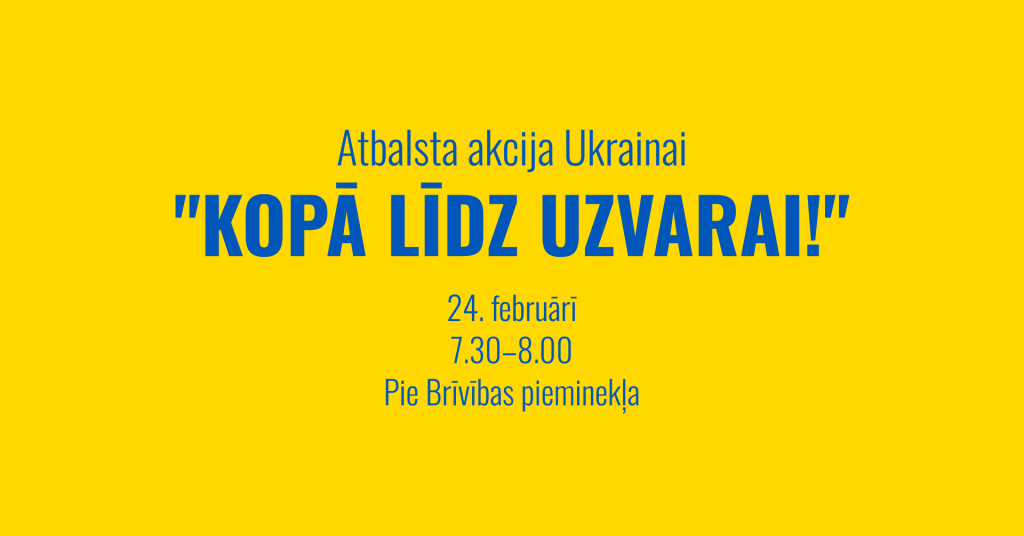 24. februārī – dienā, kad apritēs jau ceturtais gads kopš Krievijas pilna mēroga iebrukuma Ukrainā, – Rīgā, pie Brīvības pieminekļa, notiks Ukrainas atbalsta akcija “Kopā līdz uzvarai!”. Akcija “Kopā līdz uzvarai!” notiks otrdien, 24. februārī plkst. 7.30 – 8.00 pie Brīvības pieminekļa. “Jau ceturto gadu saule aust kara plosītā Ukrainā. Šis ir haotisks laiks, kad […]