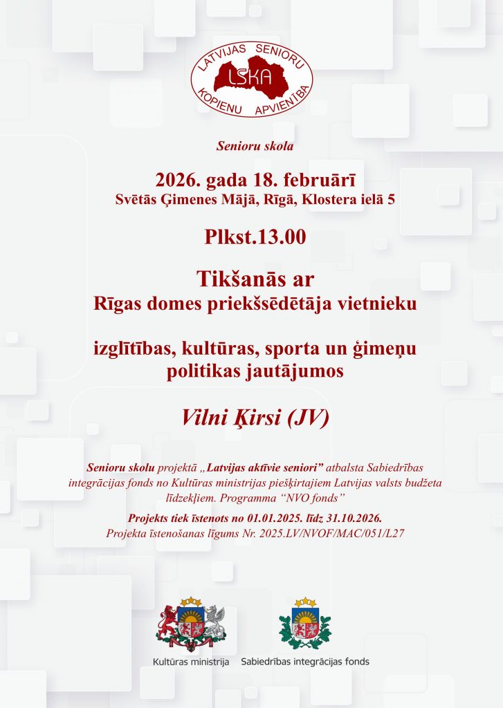 Jau vairākus gadus biedrība “Latvijas senioru kopienu apvienība” (LSKA) palīdz pansionātiem un sociālās aprūpes centriem visā Latvijā, ar AS “DelfinGroup” atbalstu sarūpējot tām nepieciešamās lietas sākot no medicīniska inventāra līdz palagiem un galda spēlēm. Šo savu darbības jomu LSKA pārāk neafišē, vienkārši piezvana aprūpes iestādēm, un painteresējas, kas tām ir nepieciešams… Tā ir galvenā, bet […]